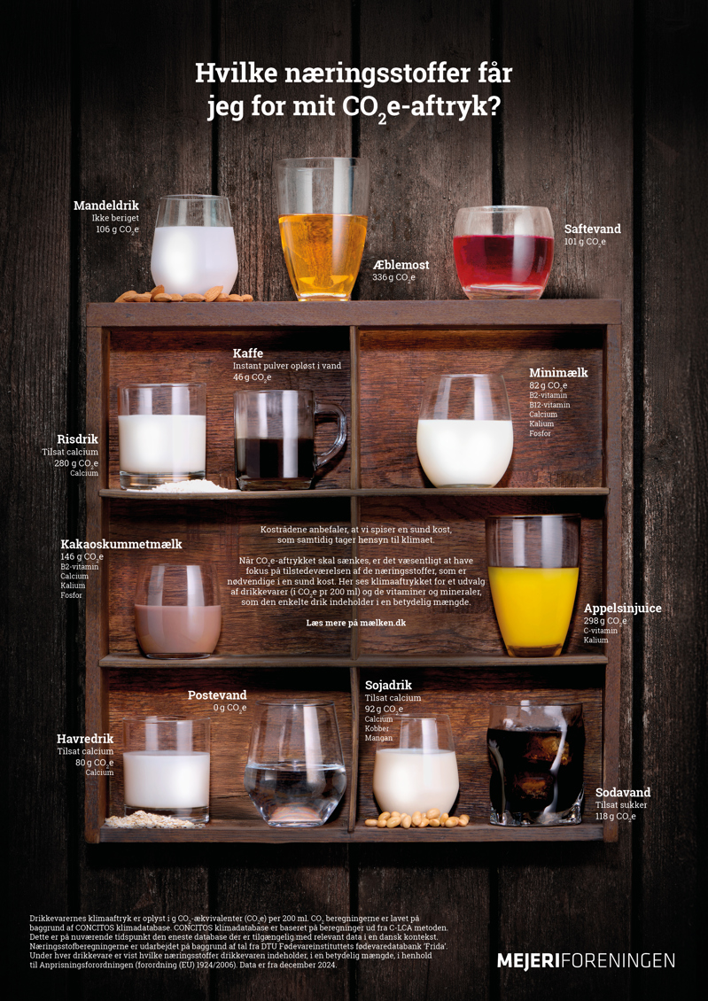 Mejeriforeningen har netop udgivet en ny plakat, der sætter fokus på både ernæring og klima i det, vi drikker.